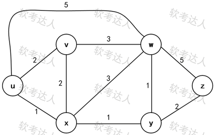 一个由多个路由器相互连接构成的拓扑图如下图所示,图中数字表示路由之间链路的费用。OSPF路由协议将利用( )算法计算出路由器u到z的最短路径费用值为( )。