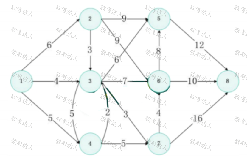 下图中,从 1 号 节点到8 号 节点的最短距离 是 ( ) 。