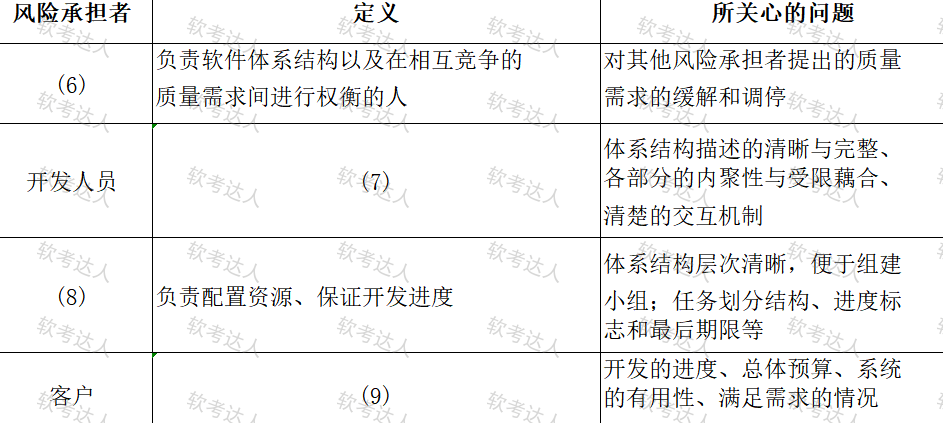 (4)和(5)是关键的体系结构决策。(4)是一个或多个构件(和/或构件之间的关系)的特性。研究(4)可使设计入员或分析员明确在搞清楚如何实现质量目标时应注意什么。(5)是影响多个质量属性的特性。【问题3】 (8分)
